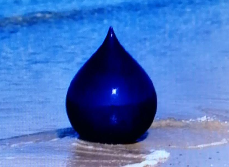 På bilden i blå glasyr (H2O) stående i vattenbrynet